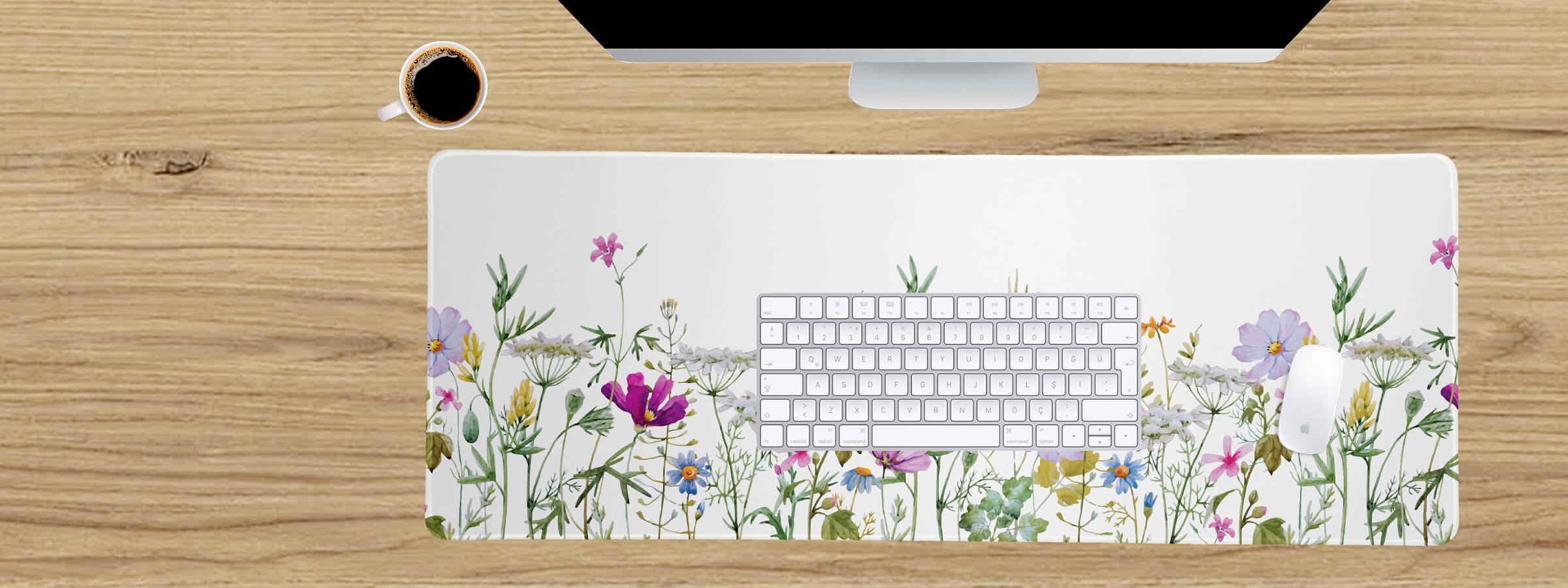 Effortlessly transform your workspace into a haven of productivity and style. With meticulous craftsmanship, our desk mats seamlessly blend functionality and aesthetics, providing a luxurious feel and captivating designs. Perfectly sized at 80cm x 30cm they are big enough for your keyboard, mouse and phone. Brighten up your desk today!
