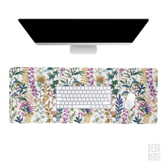 Pink and white hollyhock floral large desk mat 80cm x 30cm