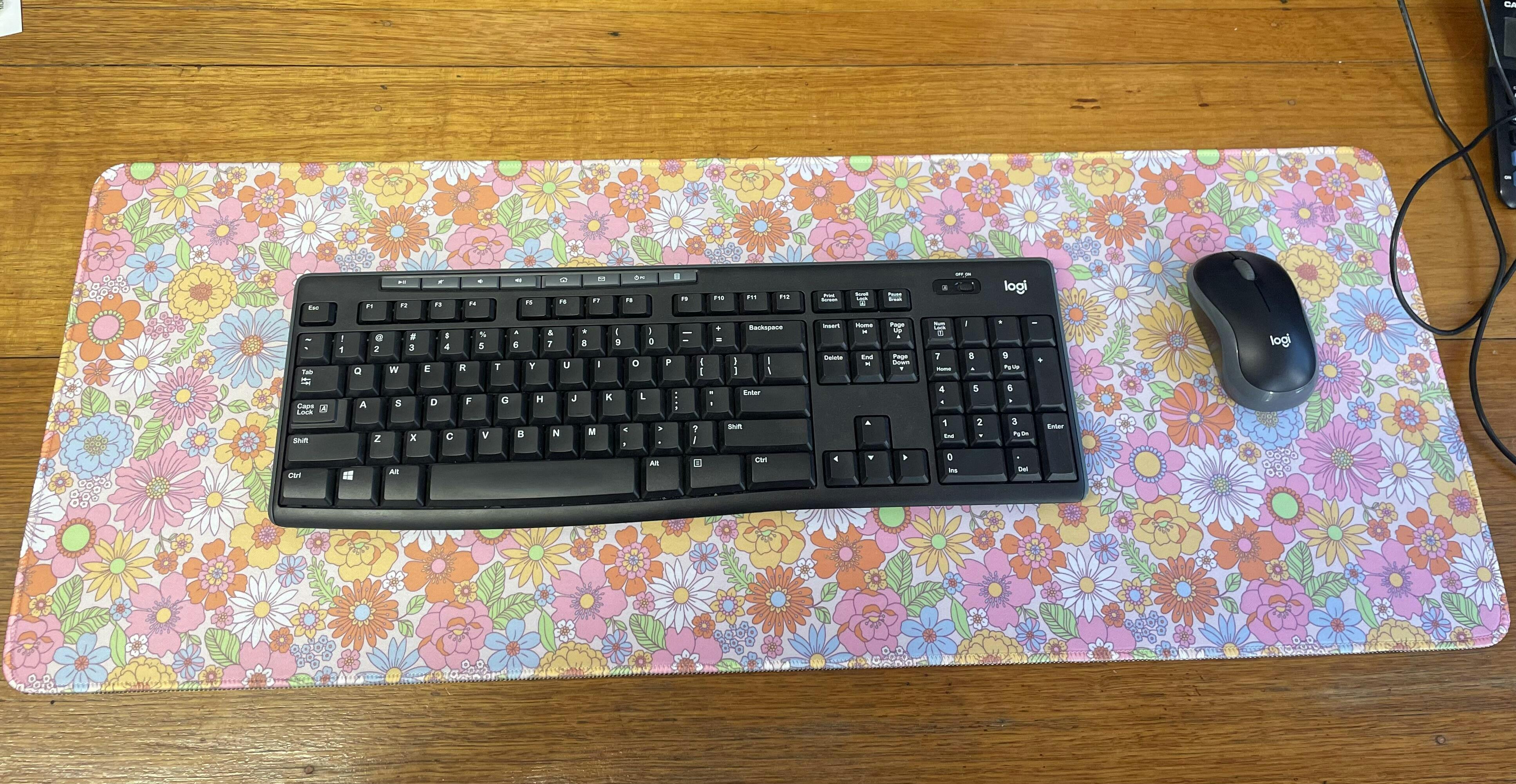 Y2K Floral Desk Mat, mouse pad, extended size 80cm x 30cm, retro, vintage look, boho, bohemian, groovy, pastel, mouse mat, work, home office
