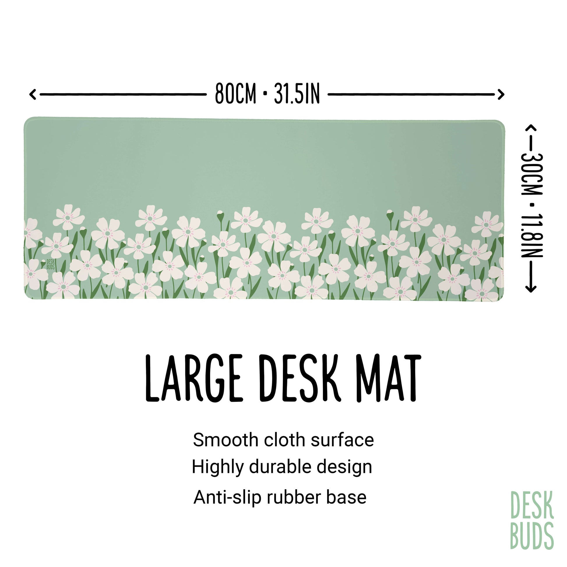 A beautiful extra large desk mat with a mint green background and white/cream flowers for your workspace. Extra large at 80 x 30cm it has room for your laptop, keyboard and mouse. Protective and beautiful!