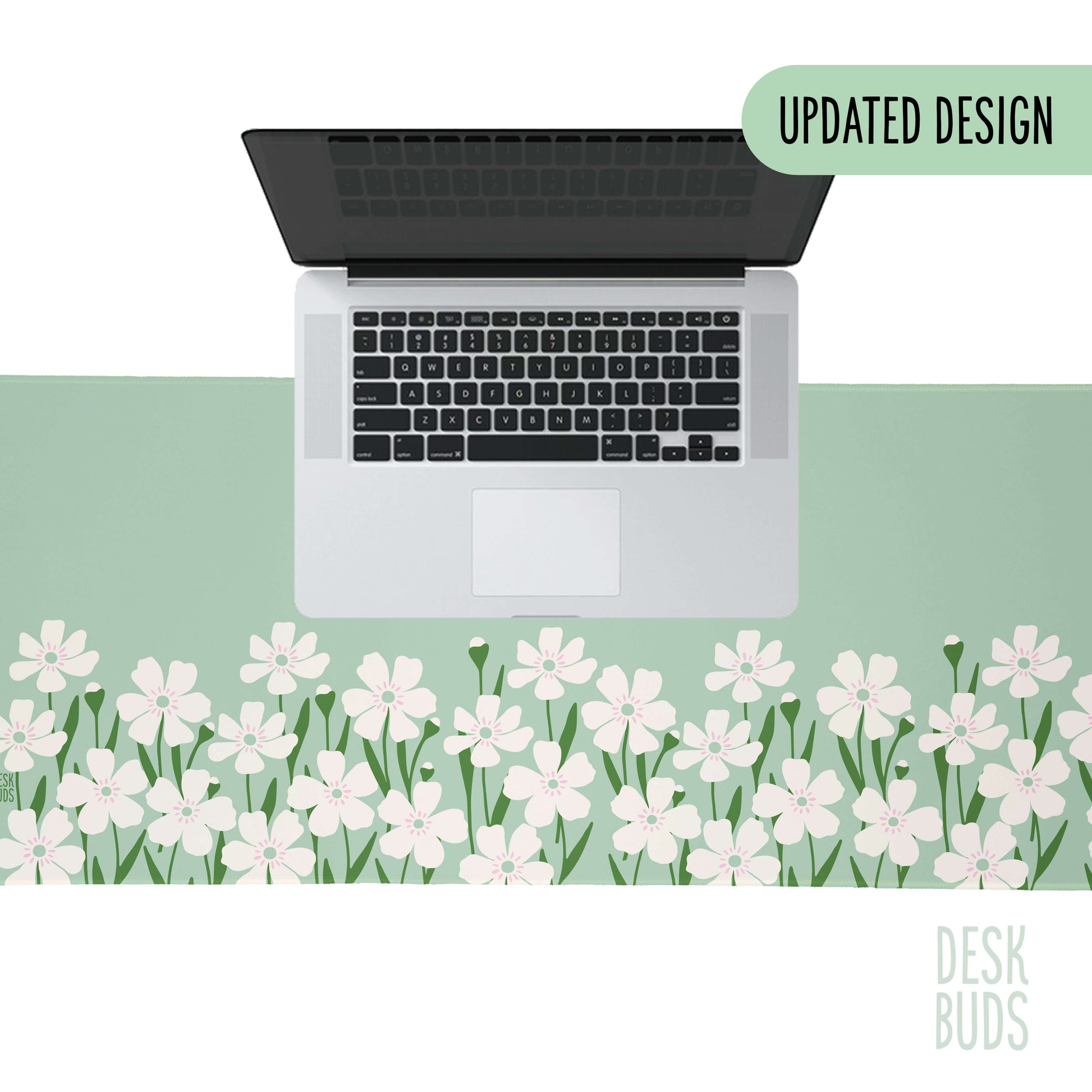 Floral Border Large Desk Mat - mint green with cream flowers - UPDATED DESIGN