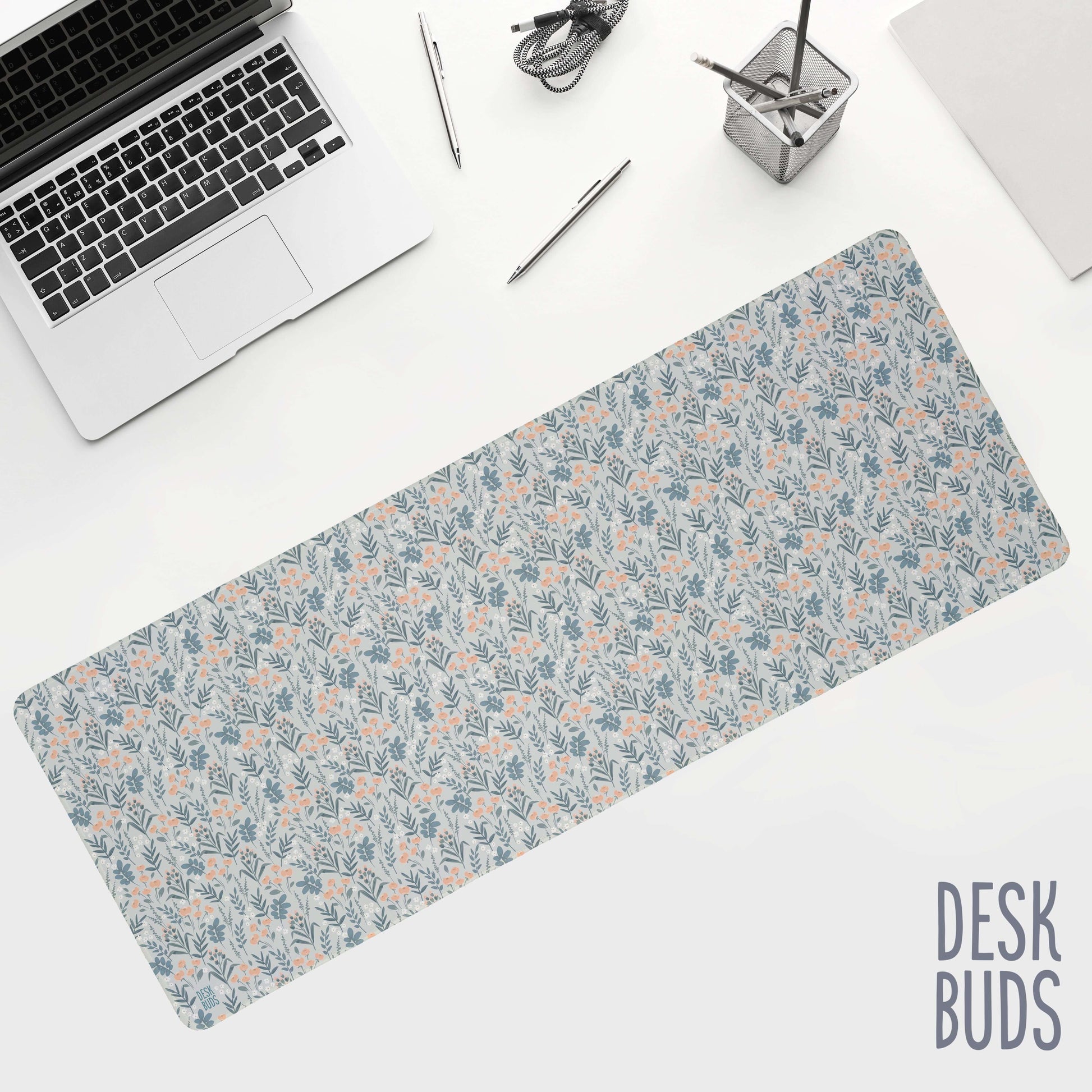 This one has beautiful grey and bluish leaves and small peach and white flowers. 80cm x 30cm gaming mouse pad, gamer desk mat, home office, birthday gift, Christmas gift, Mother's Day, 2024.
