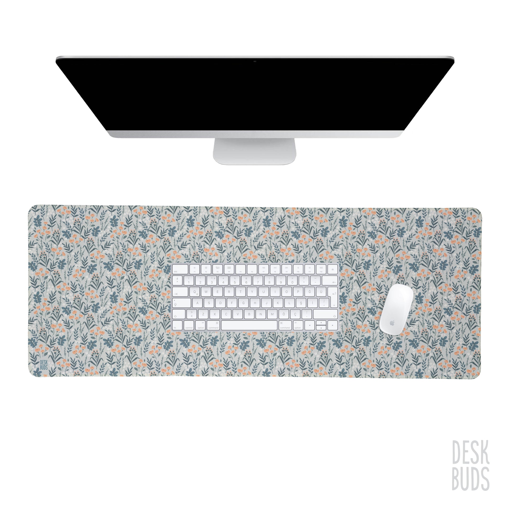 A simple but beautiful extra large desk mat in light grey with hints of peach and blue. Make your desk both functional and gorgeous.